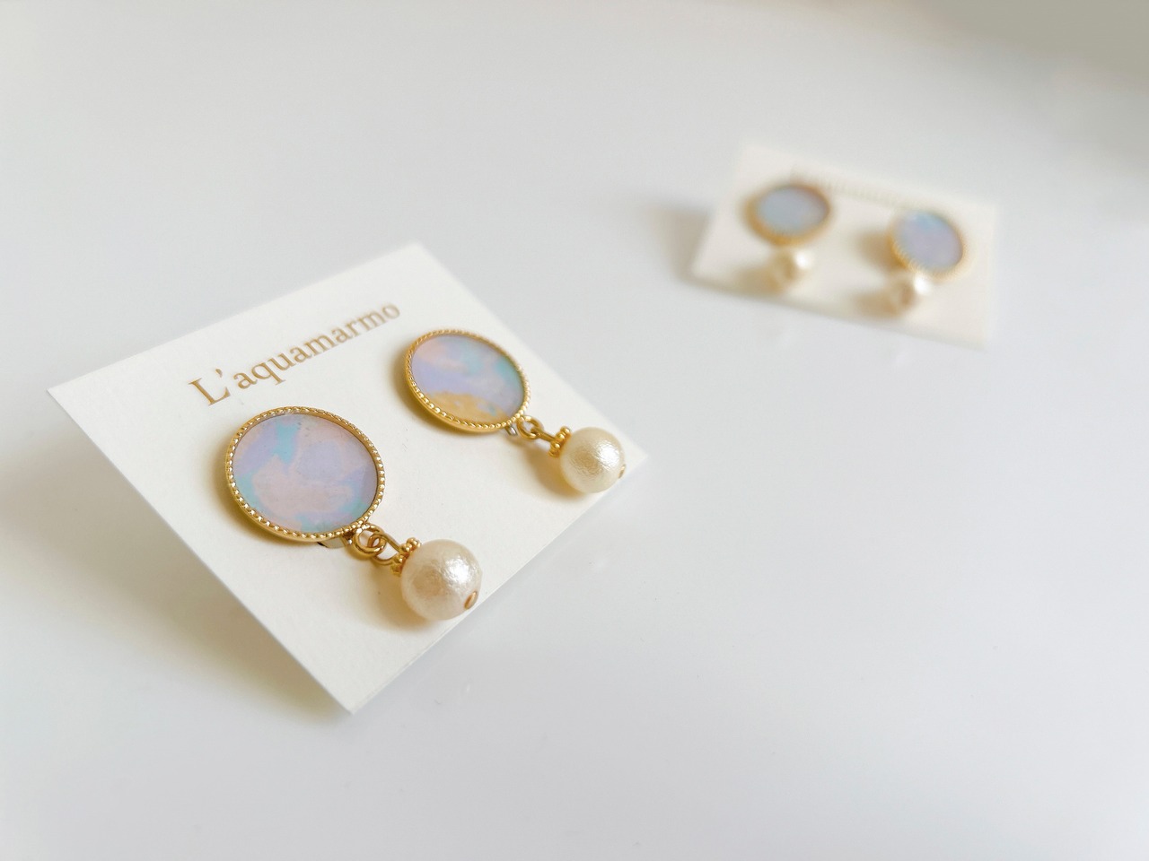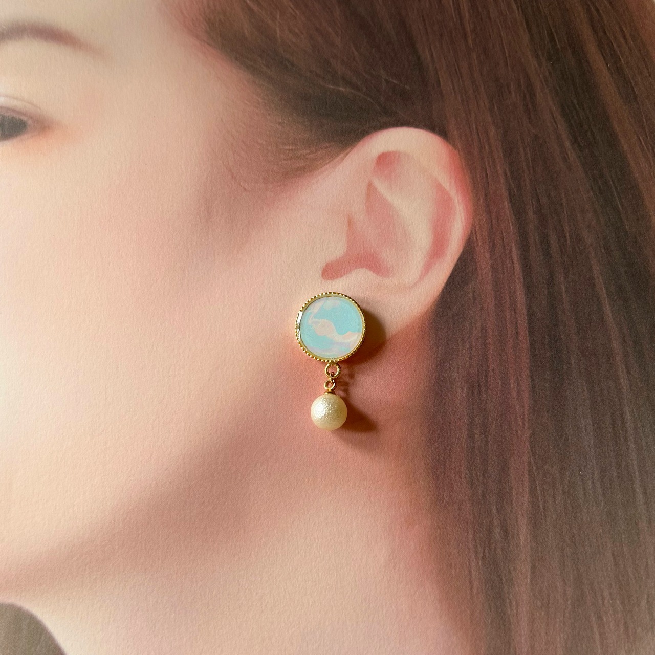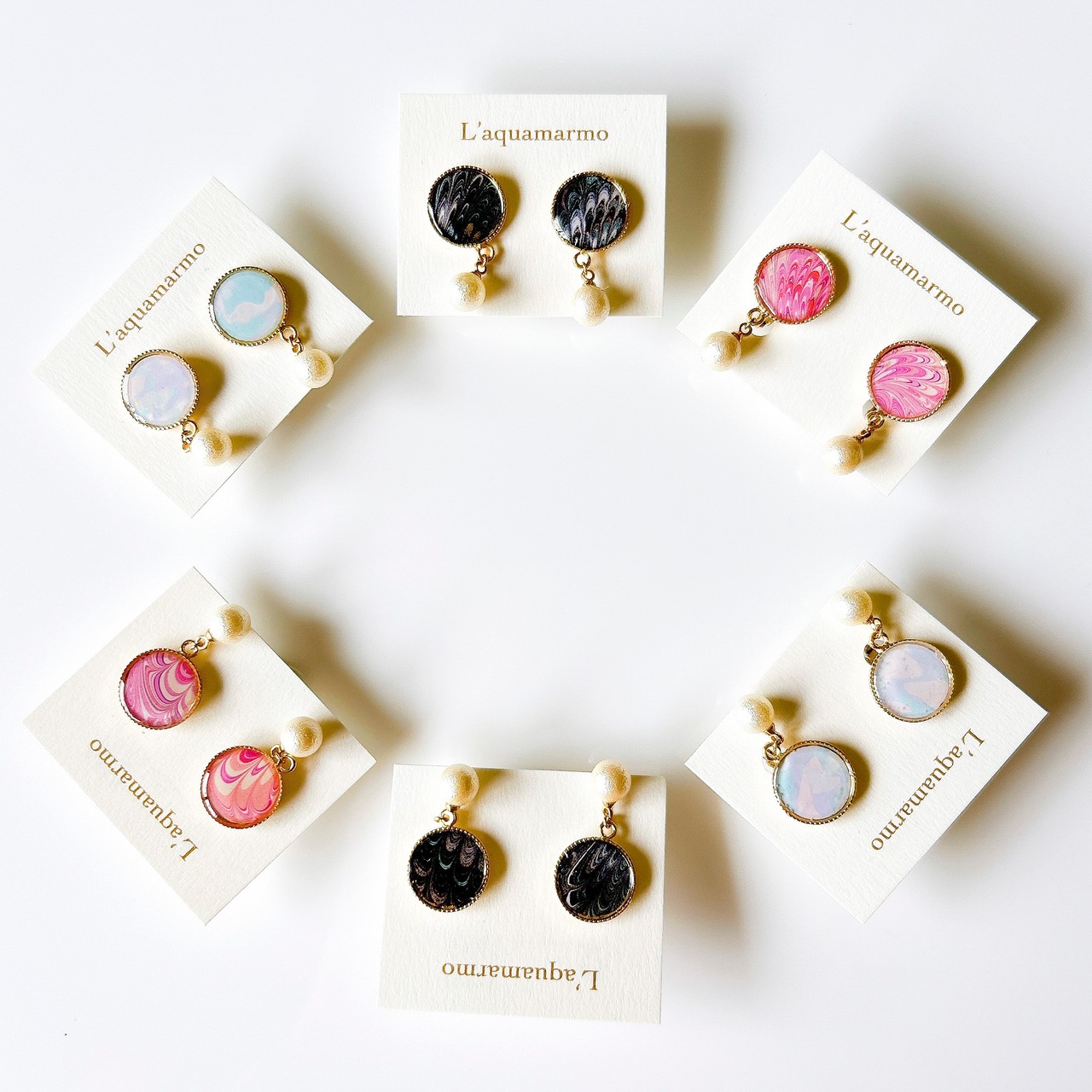 手作りのマーブル紙でできた緻密な世界をレジンで閉じ込めた一点ものの